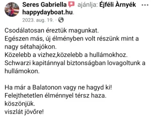 Most végre rám találtál és én elviszlek benneteket egy remek programra a hajómmal.